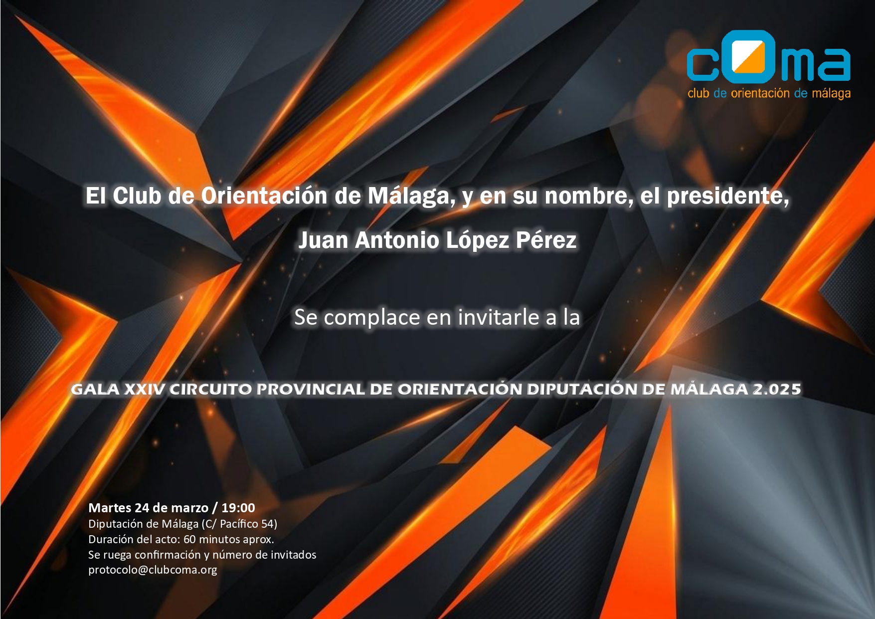 Para una previsión de asistentes, rogamos confirmación al email protocolo@clubcoma.org de todas las personas que quieran asistir, antes del martes 17 de marzo a las 15:00 horas.